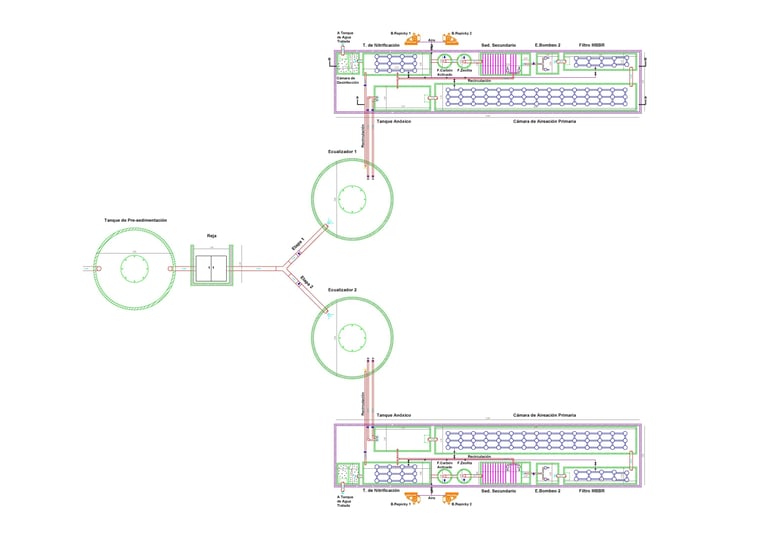 Diseño y construcción de PTAR/ETI, estaciones de bombeo y redes para minería, industria y municipal, con puesta en marcha y capacitación de operadores.